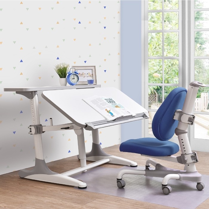 โต๊ะ&เก้าอี้เรียนหนังสือที่สามารถปรับระดับได้ตามส่วนสูงของคนนั่งซึ่งช่วยให้เด็กนั่งในท่าที่ต้องตามสรีระและมีสมาธิในเรียนรู้มากยิ่งขึ้น อีกทั้งยังช่วยส่งเสริมการเรียนรู้ต่างๆ ไว้ว่าจะเป็นด้านการอ่าน, เขียนและวาดภาพ ออกแบบให้ใช้งานได้นานตั้งแต่เด็กจนถึงผู้ใหญ่