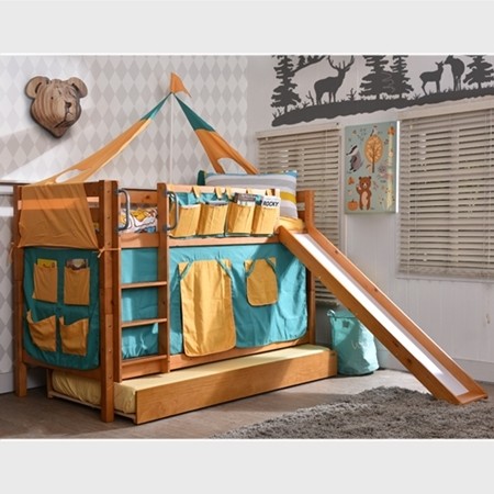 ชุดเตียงนอนสไลเดอร์สุดหรรษา ให้เป็นทั้งที่นอนและที่นอนในชุดเดียว(สไลเดอร์ถอดออกได้ตลอด) นอนได้จนโต ช่วยให้พื้นที่ในห้องของคุณกว้างยิ่งขึ้น เหมาะสำหรับเด็กๆที่เริ่มแยกนอน เตียงไม่สูงปีนขึ้น-ลงได้ง่าย ปลอดภัยต่อเด็ก ผลิตจากไม้จริงคงทนแข็งแรงและด้วยขนาดมาตรฐานเตียงเดี่ยว (3.5ฟุต) เตียงสองชั้นรุ่นนี้สามารถถอดแยกออกเป็นเตียงเดี่ยวได้อีกด้วย